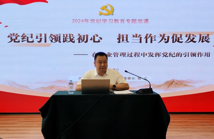 黨委書(shū)記、董事長(zhǎng)胥立講授題為《黨紀(jì)引領(lǐng)踐初心 擔(dān)當(dāng)作為促發(fā)展》的黨紀(jì)學(xué)習(xí)教育專題黨課。他從認(rèn)識(shí)黨紀(jì)的重要性、深學(xué)細(xì)悟“六項(xiàng)紀(jì)律”、加強(qiáng)黨紀(jì)建設(shè)的要求、在管理中貫徹黨紀(jì)的思考和實(shí)踐四個(gè)方面進(jìn)行了講解,并與現(xiàn)場(chǎng)人員進(jìn)行了互動(dòng)交流。